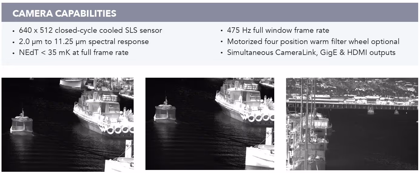 The combination of a high performance digital sensor, along with the standard broadband spectral response of the SLS material, results in a truly unique infrared camera.